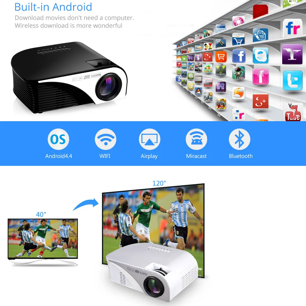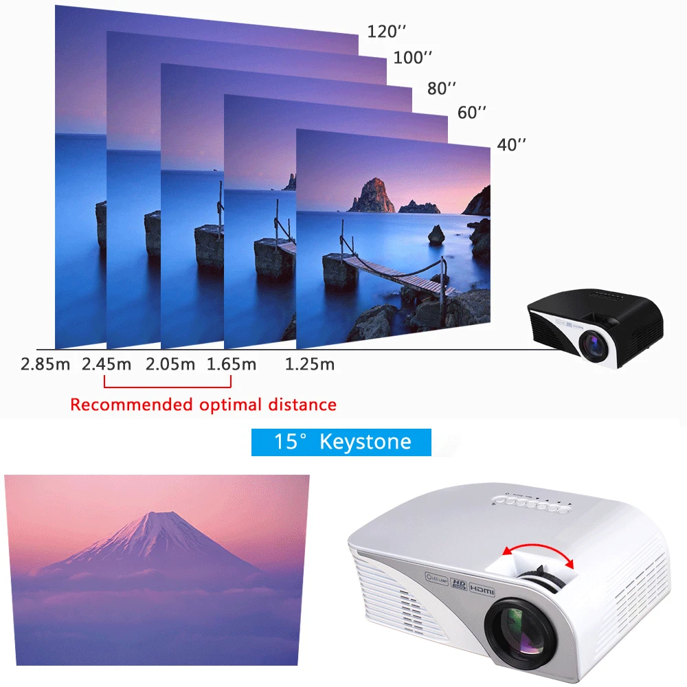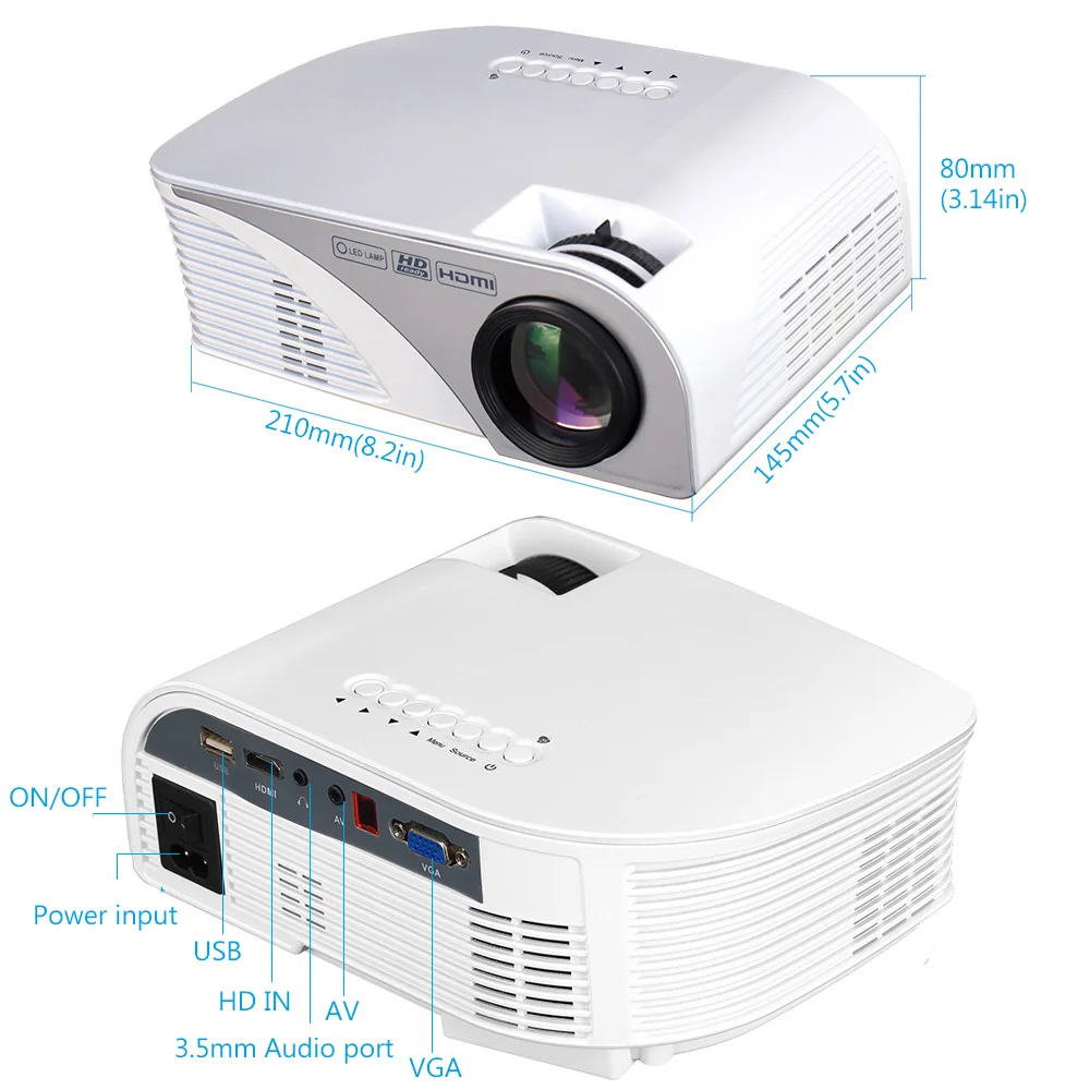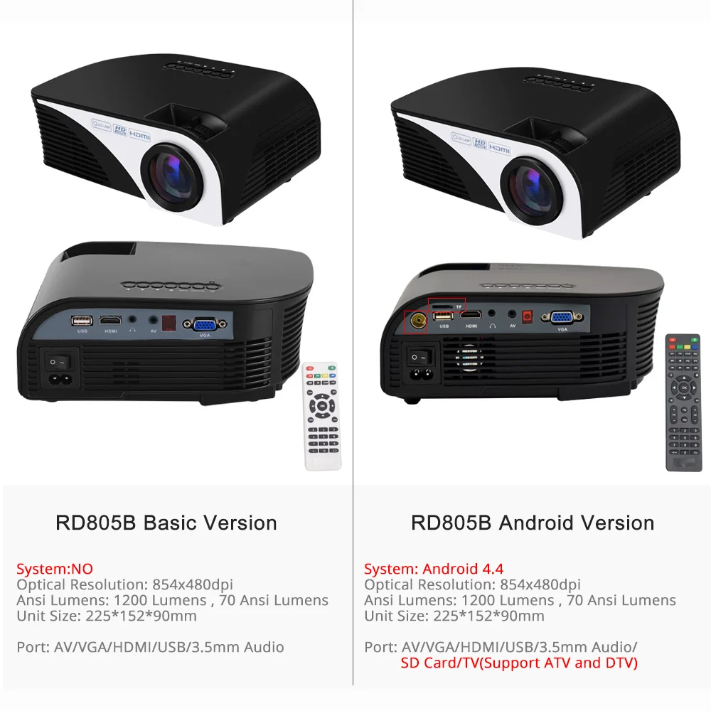 Rigal Projector RD805B 1200 Lumen LED MINI Projector Support 1080P with 3D Beamer for Video Home Cinema Input HDMI USB VGA SD AV