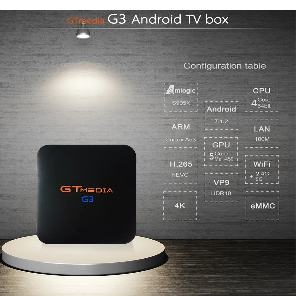GTMEDIA G3 smart tv box android 7.1 4K HDR Quad Core 2G 16G WIFI Google Cast Netflix support IPTV m3u Set top Box Media Player